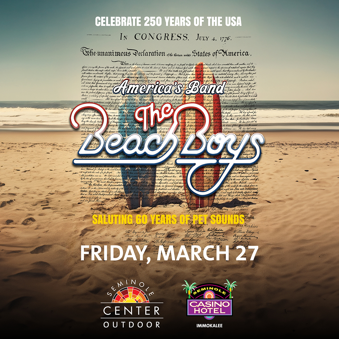 IMMOKALEE, Fla. (Dec. 17, 2025) – As The Beach Boys mark more than a half century of making music, the group continues to ride the crest of a wave unequalled in America’s musical history. The Beach Boys – who have become synonymous with the California lifestyle and an American icon to fans around the world – will celebrate 250 years of the USA, saluting 60 years of Pet Sounds, at Seminole Casino Hotel Immokalee Friday, March 27 at 8 p.m.